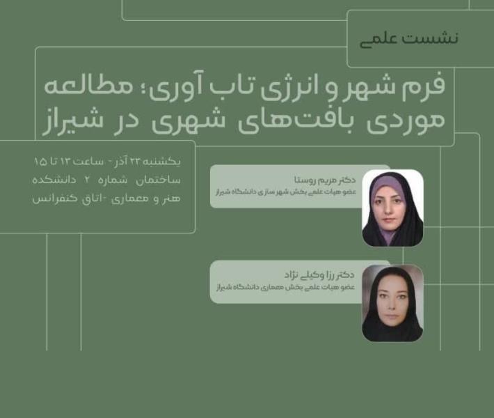 نشست تخصصی «فرم شهر و انرژی تاب‌آوری؛ مطالعه‌ موردی بافت‌های شهری شیراز»
